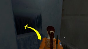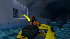 Après avoir récupéré la clé du portail, aller l'ouvrir grâce à la cabane en face. Utiliser le canot et passer de l'autre côté du portail. Se stopper avant le premier virage à droite ! Plonger dans l'eau glacée et trouver la clé de la hutte dans un tout petit passage au fond (IMAGE 1). Remonter rapidement au canot. Faire demi-tour, prendre à droite au portail et s'arrêter à côté de la hutte (IMAGE 2). Utiliser la clé.