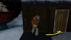 Après avoir pris possession du canot, faire le tour du bateau, puis prendre à gauche de la hutte. S'arrêter devant l'ouverture à gauche (IMAGE 1). A droite, glisser (IMAGE 2) puis sauter au dernier moment par-dessus l'eau glacée (tomber dedans = mort assurée). Prendre ensuite à droite pour le secret.
