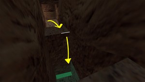 Au début, traverser le désert vers le fond en allant tout droit. Suivre à droite (IMAGE 1), avancer dans la grotte puis glisser-sauter par-dessus le premier trou. Se laisser descendre dans le second (IMAGE 2) en évitant les barbelés. Sortir par la gauche, tuer 1 crotale derrière les barbelés et pousser le bloc à gauche dans le dernier tunnel en cul-de-sac.
