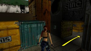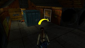 Au tout début du niveau, entrer dans le hangar (IMAGE 1). Tuer les ouvriers et contourner le bloc gris pour entrer dans le passage près des grilles (IMAGE 2). Le secret est derrière, posé sur un bloc orange.