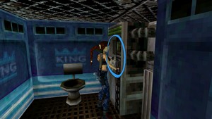 Après avoir récupéré le disque d’accès à la pompe (IMAGE 1), se retourner et sauter à l’échelle en face. Grimper tout en haut, partir dans le tunnel à gauche et grimper à l’échelle suivante. En haut, partir à gauche pour revenir dans le grand puits de l’accident de train. Prendre l’échelle juste à gauche et grimper jusqu’à l’étage suivant. Passer derrière les échafaudages en tuant 1 ouvrier et revenir au niveau du train. Actionner le levier dans l’angle au fond à gauche et passer ensuite à gauche du train. Au bout, aller à gauche et se diriger vers des WC, tuer 1 ouvrier et aller dans la cabine de gauche pour utiliser le disque sur le mur (IMAGE 2), ce qui a pour effet d’inonder le puits.