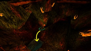 Plonger dans l’eau et entrer dans le tunnel au milieu de la boue verte et émerger dans un volcan souterrain (IMAGE 3). Avancer sur le sentier et au bout, sauter à gauche. Sauter sur la pente suivante puis, de là, sur la petite plateforme triangulaire en bas à gauche, puis dans l’angle à droite. Regarder à droite au fond du canyon et tuer 1 ptéranodon. Sauter sur la plateforme à droite puis sauter par-dessus le trou pour arriver sur la suivante. Sauter dans l’angle sur la plateforme de lave et tuer 1 ptéranodon qui arrive. Sauter pour s’accrocher au rebord et se déplacer vers la gauche pour se laisser tomber sur la plateforme au bout. Grimper sur la suivante puis se retourner et faire un saut avec élan en visant un peu à droite la plateforme entre les 2 pentes et prendre 1 grande trousse de soins. Avancer au centre de la zone (IMAGE 3) et sauter sur la droite pour tuer 2 ptéranodons et prendre 1 grande trousse de soins. Plonger dans l’eau et suivre le même tunnel qu’à l’arrivée pour revenir dans le puits inondé.