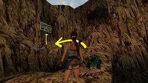 Peu après le trou du secret 2, Lara doit ouvrir une porte pour continuer à avancer avec le quad. Une fois la porte ouverte, prendre à gauche au niveau du cristal (IMAGE 1). Sauter par-dessus un premier trou puis prendre à droite, contourner le trou du milieu puis continuer jusqu’à ressortir en plein air, et s’arrêter en haut de la corniche (IMAGE 2). Descendre du quad et sauter à droite vers des munitions puis grimper dans le tunnel au-dessus pour le reste du secret.