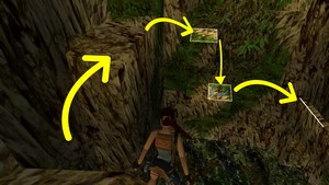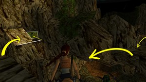 A la toute fin, arrivé à la cascade, ne pas tomber à l'eau, sinon, pas de secret. Sauter à gauche (IMAGE 1) et tuer les trois vautours. Suivre le chemin indiqué en récupérant au passage les munitions. Sauter ensuite avec élan vers la faille de l'autre côté et progresser à droite (IMAGE 2) pour entrer dans le passage au bout.