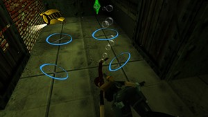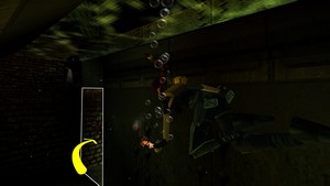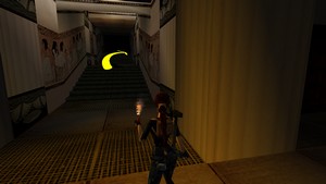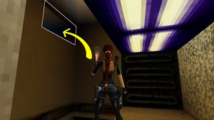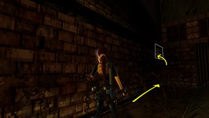 Au début du niveau, prendre à gauche dans la salle avec les deux bassins (IMAGE 1). Se laisser glisser sur la pente puis grimper aussitôt à droite. Prendre ensuite à gauche et s'avancer en marchant : se laisser tomber à gauche là où il n'y a pas de barbelés. Grimper dans le tunnel (IMAGE 2) et sortir.