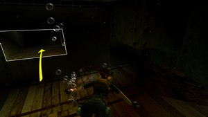 Dans la salle avec le plongeur et le garde qui surveillent attentivement le moindre mouvement, ne pas sauvegarder. Il possible qu'une sauvegarde bloque le secret suivant. Après avoir récupéré les harpons sur la corniche surplombant la salle, plonger dans le bassin, en direction de la zone entre les 2 piliers muraux (IMAGE 1). Sous l'eau allumer une torche pour y voir clair car il y a deux tunnels : prendre celui de gauche (IMAGE 2) pour le secret.