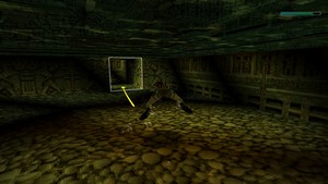 Dans la salle du bassin avec les flammes de chaque côté, actionner le levier en face et plonger afin de poursuivre par le tunnel au fond de l'eau. Sortir de l'eau par la gauche et grimper au sommet de la salle. Faire le tour en tuant un serpent en route puis rejoindre la salle suivante en évitant la boule. Sauter par-dessus les épées et descendre dans le trou, par la droite (IMAGE 1). Allumer une torche, marcher entre les piques puis ramper dans le petit soupirail au milieu du mur (IMAGE 2). Suivre le tunnel et tuer le cobra juste à droite en entrant dans la pièce des secrets.