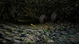 Attendre que les 2 disques passent pour foncer tout droit. Dans la zone suivante, tuer 4 araignées (une arrive de la droite dès le début, une tombe du plafond au fond à gauche, et deux autres tombent quand on s'approche de la tyrolienne).
