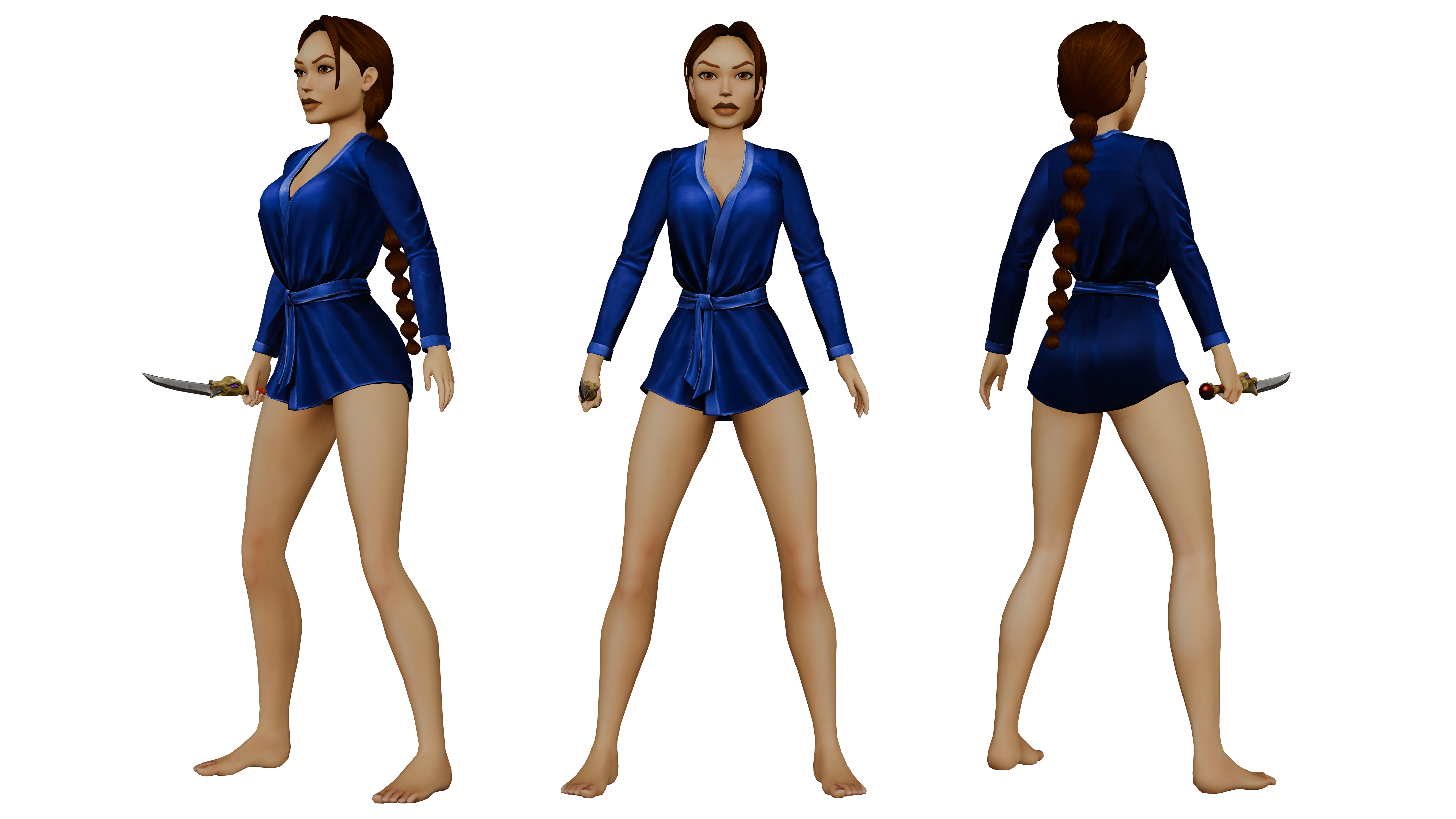 Si Lara possède normalement toujours une tenue pour chaque occasion lors de ses aventures, il en est de même à domicile, au manoir, lorsque qu’elle goûte enfin à un repos bien mérité.