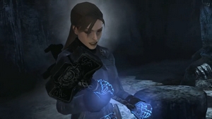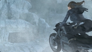 Après avoir escaladé une tour de glace, Lara parvient à ouvrir l'ancienne porte de Valhalla.