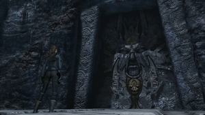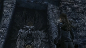 Lara : « La salle des Occis », le Valhalla ! La salle d'Odin, où les guerriers tombés au combat festoyaient et se préparaient pour l'ultime bataille de Ragnarök. Et voici donc Valgrind, la Porte des morts. « Ancienne est cette porte et comment l'ouvrir, peu le savent ». Hmm... Où sont les Valkyries quand on a besoin d'elles ?