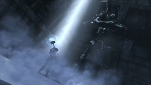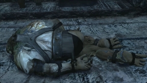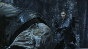 Dans la salle des Occis, Lara se retrouve face à un géant de givre... étendu sur le sol.